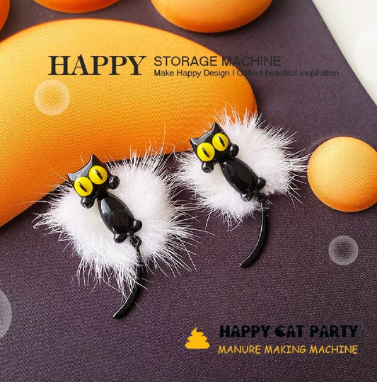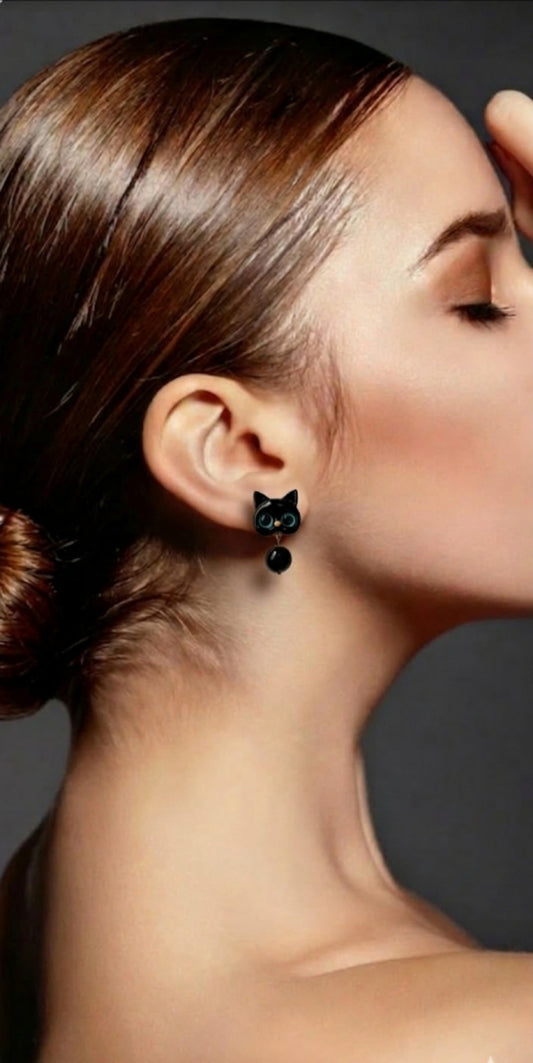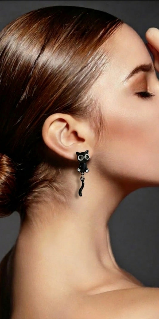 Girly Sweet And Cute Big Cat Eyes With Tail Earring